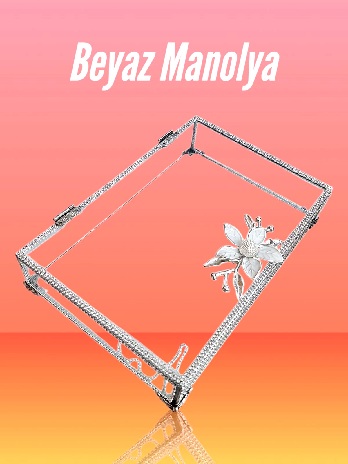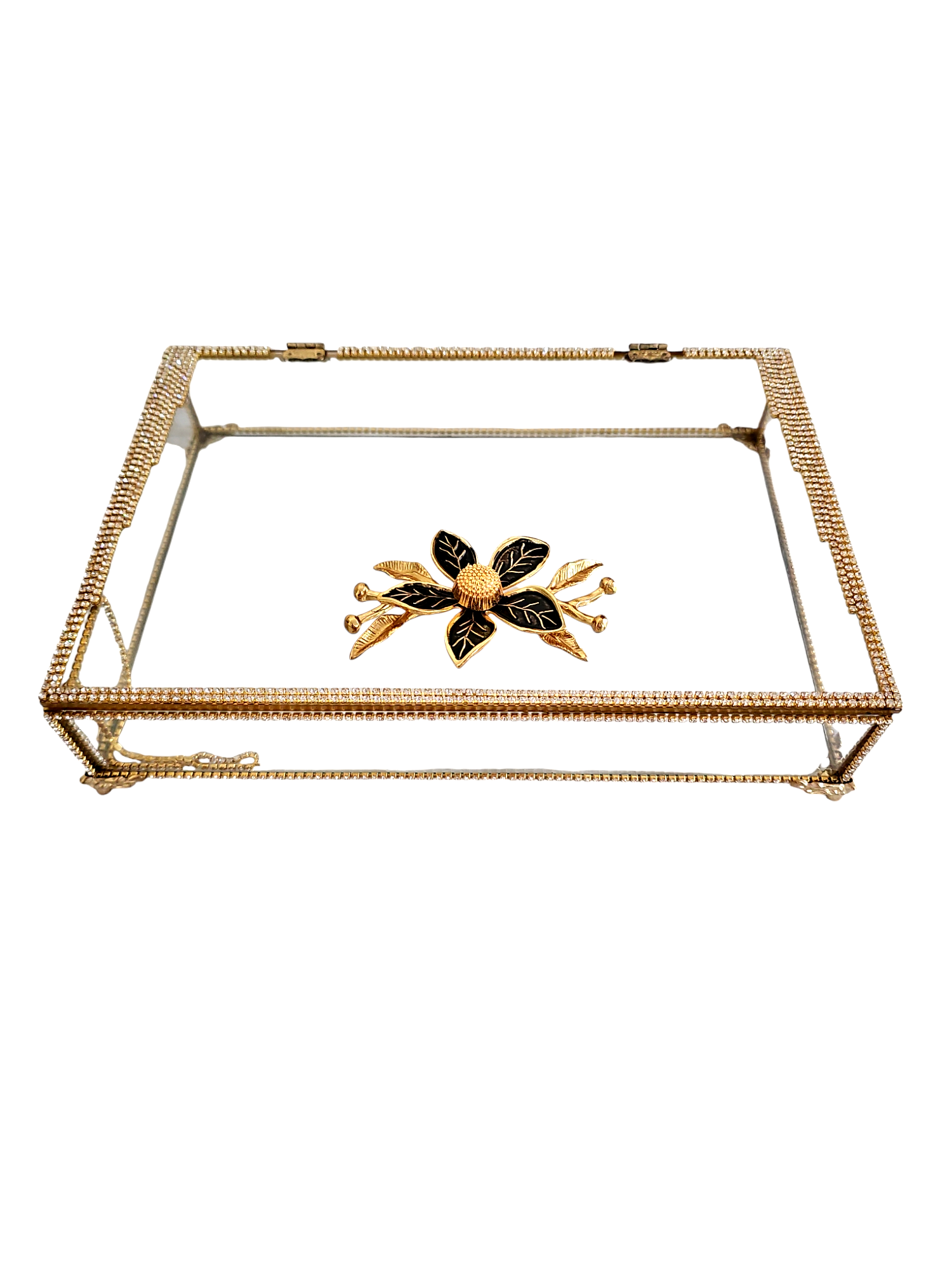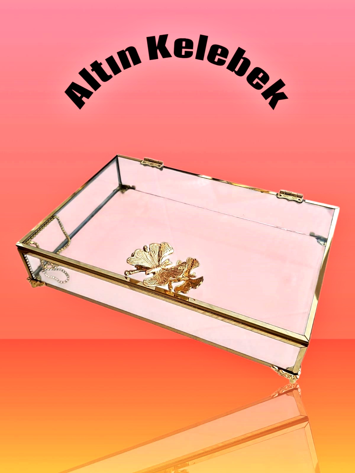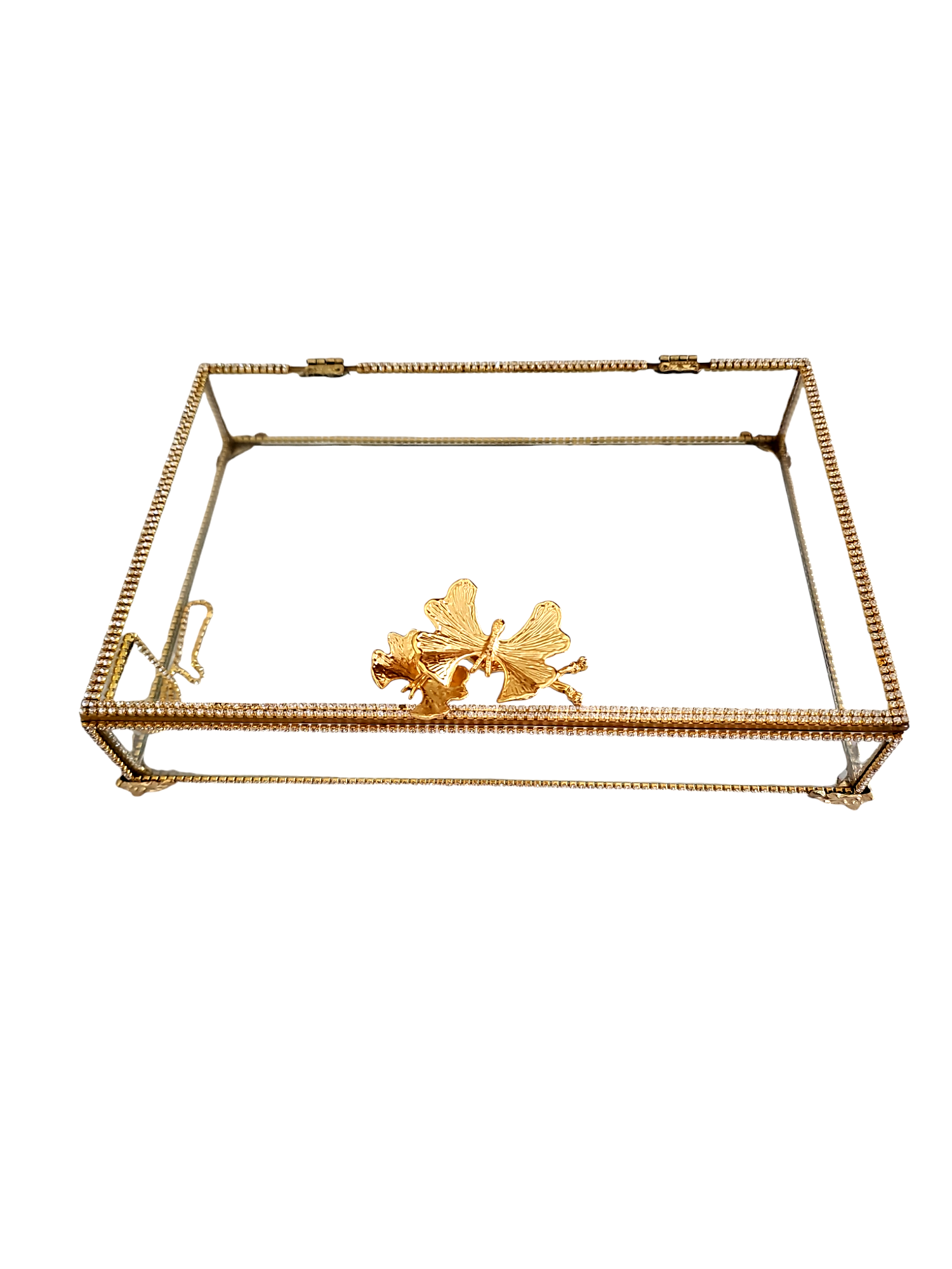 KDD PLEXİ TAŞLI ALTIN CAM KUTU KÜÇÜK MANOLYA KULPLU AYAKLI 25*16 CM - 132