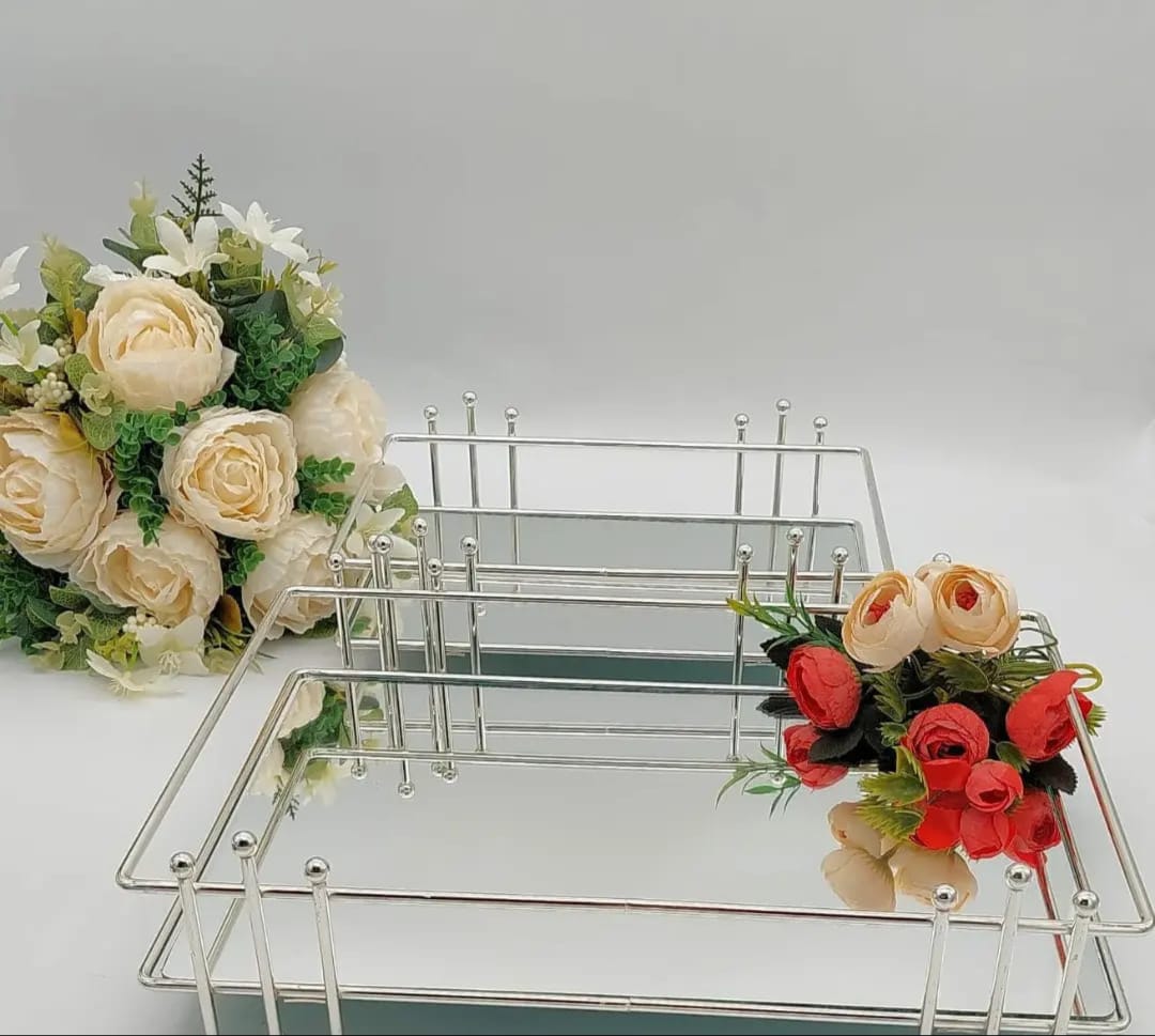 HK DİKDÖRTGEN TEPSİ GÜMÜŞ KÜÇÜK 25 CM Büyük 30 CM (İKİLİ TAKIM)