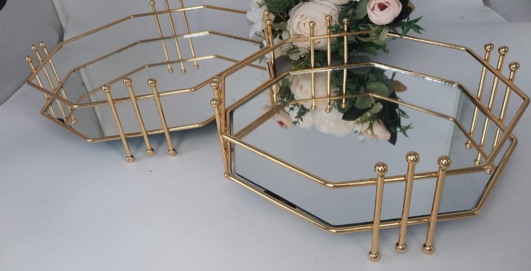HK SEKİZGEN GOLD TEPSİ 25 VE 30 CM (İKİLİ TAKIM)