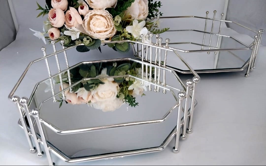 HK SEKİZGEN GÜMÜŞ TEPSİ 25 VE 30 CM (İKİLİ TAKIM)